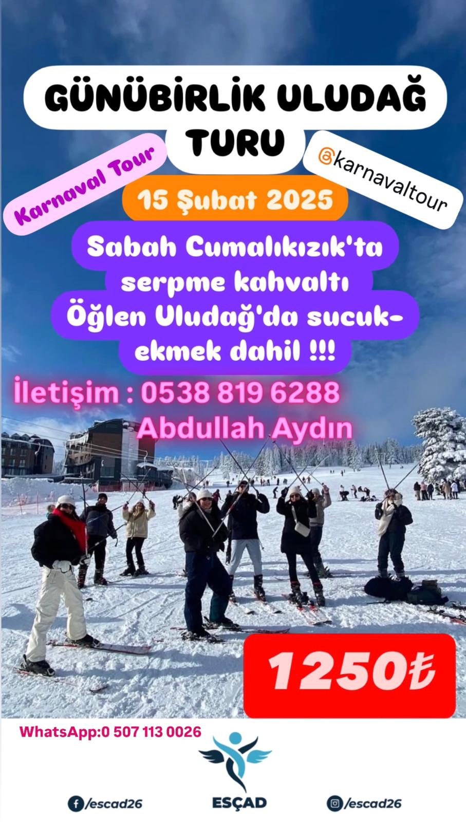 Detaylı Bilgiler ve Katılım Şartları Hareket Noktaları ve Saatler: Cengiz Topel Caddesi Karnaval Tur Ofis Önü: 05:00 Hasan Polatkan Migros Önü: 05:15 Yunus Emre Devlet Hastanesi Önü: 05:30 Ücrete Dahil Hizmetler: Turizm taşıma belgeli araçlarla ...